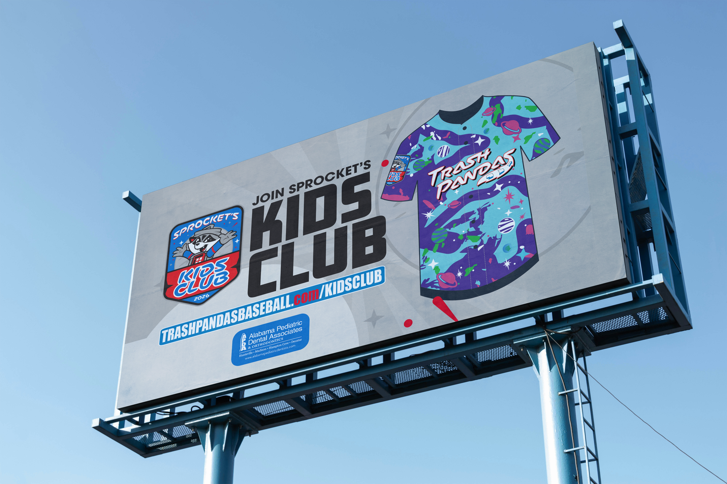 Sprocket’s Kids Club is a youth-focused initiative led by the Rocket City Trash Pandas’ Community Relations Department, offering young fans exclusive access to select home games, the Kids Zone at Toyota Field, and a custom jersey designed specifically for fans under the age of 12. I was tasked with designing the Kids Club jersey, with an emphasis on visibility, inclusivity, and youthful energy.